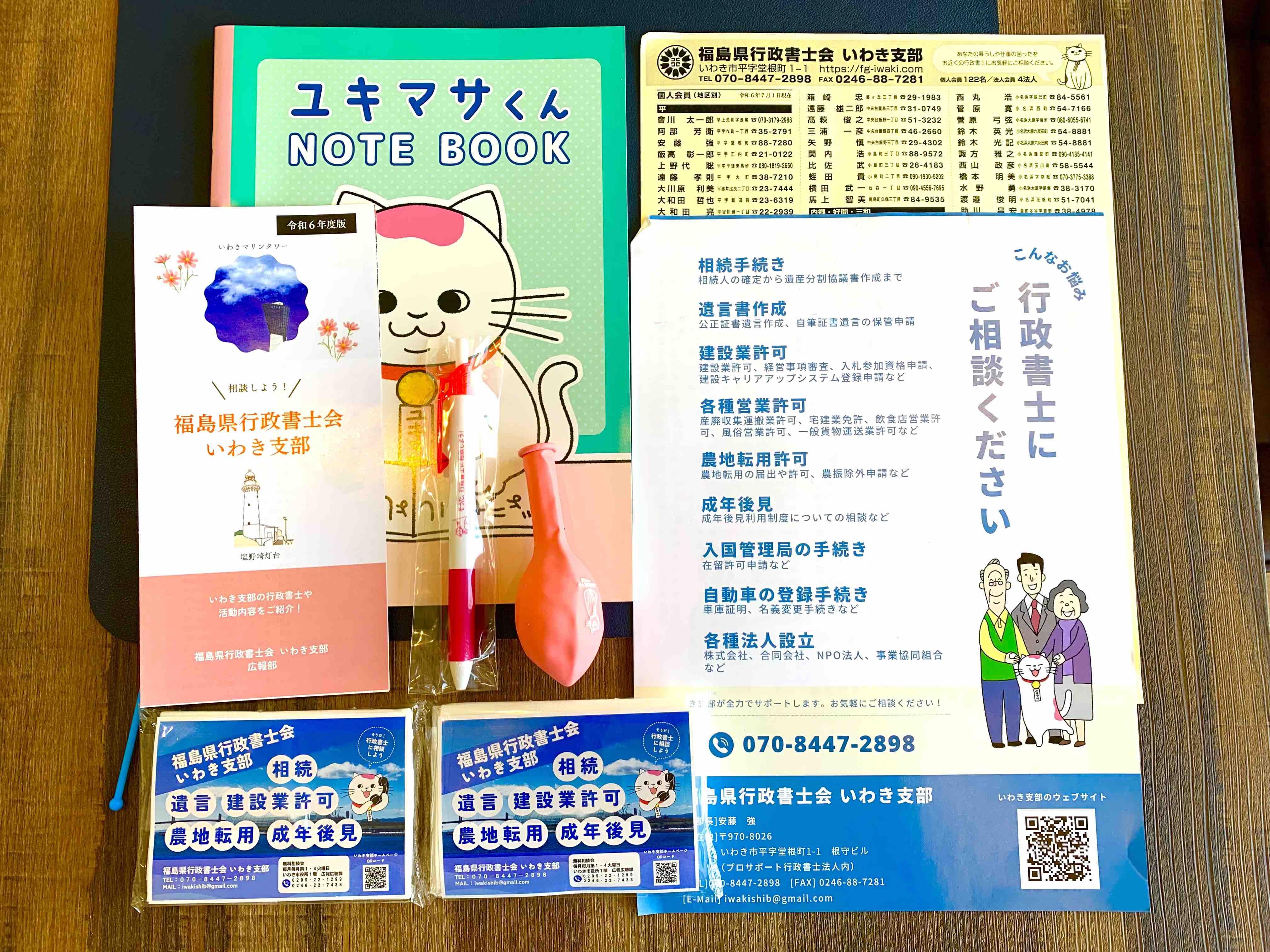 ・令和6年10 月27日(日)丹治広報部員の骨折りにより、いわき駅前公園化計画イベントに合わせて「ほこみち」にブースを開設できました。女性(3人)ならではのやわらかさ」を全面にみなぎらせ広報グッズを配布、人通りはイマイチでしたが、行政書士のピーアールとしては大奮闘できました。企画部からもアシスト頂きました。感謝です。